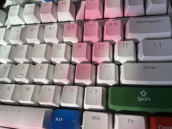 阳光透过红色剪纸窗花投到了键盘上,染上了一抹温柔的色彩。