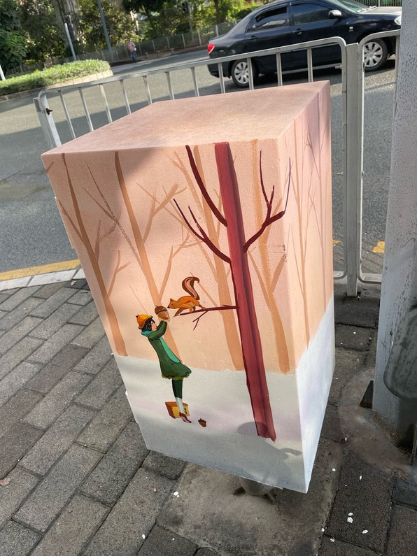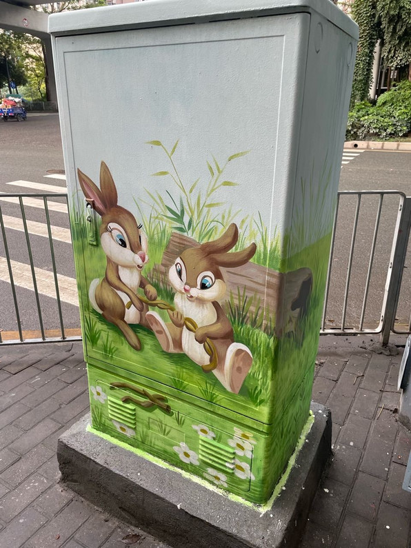 几周前另一个路口看到一个年轻人坐在那里调配颜色画画,这个应该也是他的作品。